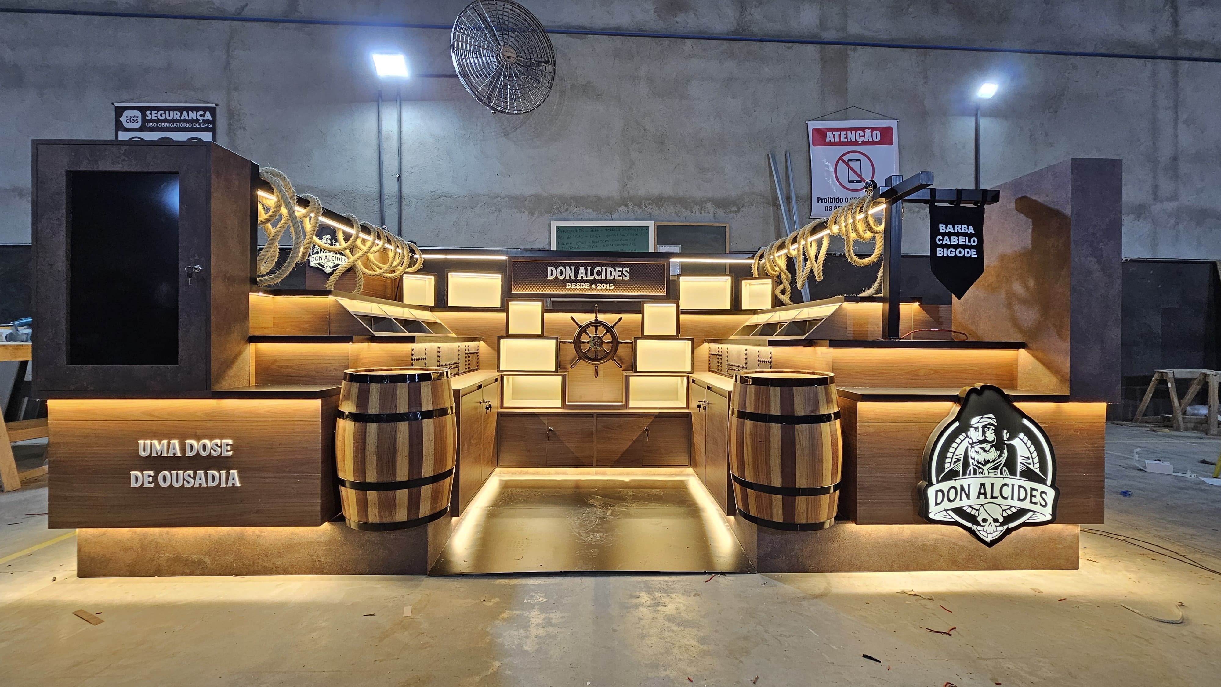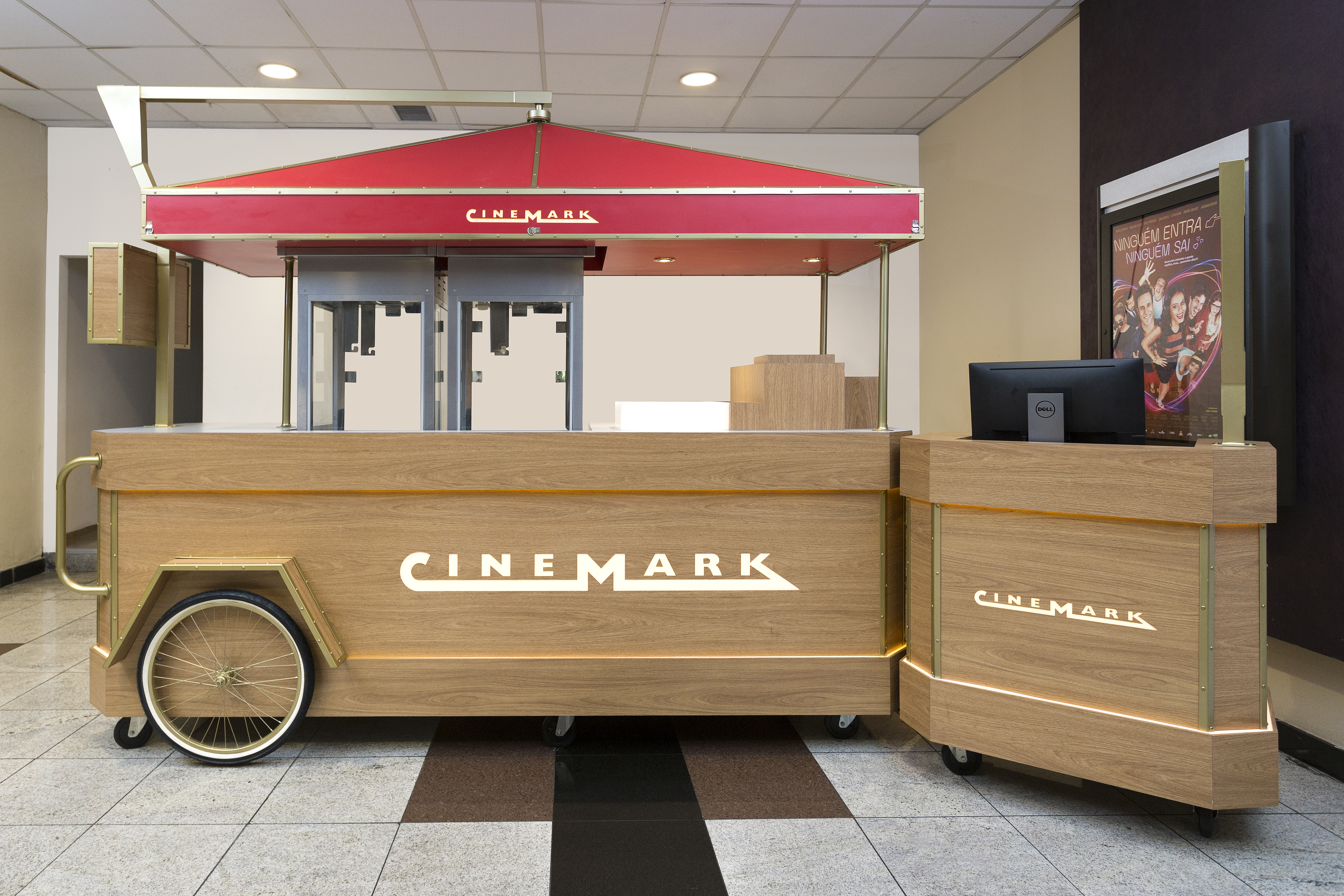 Produção de carrinhos, quiosques e displays em MDF, projetados para uso em locais cobertos e protegidos.
